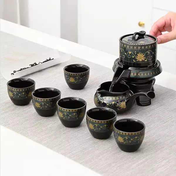 Bộ sản phẩm được làm từ chất liệu Gốm, phong cách cổ xưa tạo nên những bộ ấm chén đặc biệt này với chất liệu mịn bóng màu nâu đen tuyệt đẹp
